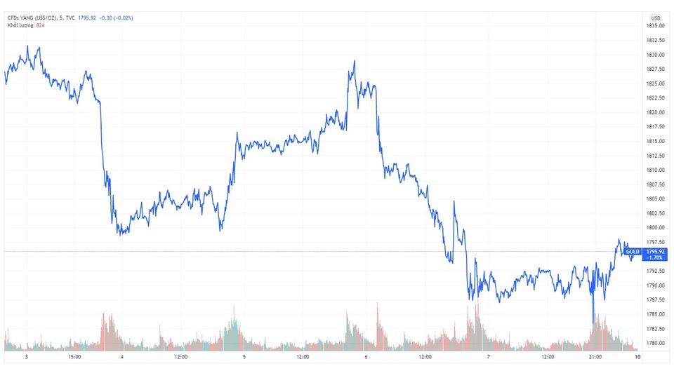 Ngược lại, nếu tăng trở lại, vàng sẽ phải đối mặt với ngưỡng kháng cự quan trọng 1.800 USD, trước khi muốn trở lại vùng 1.815-1.833 USD/ounce.