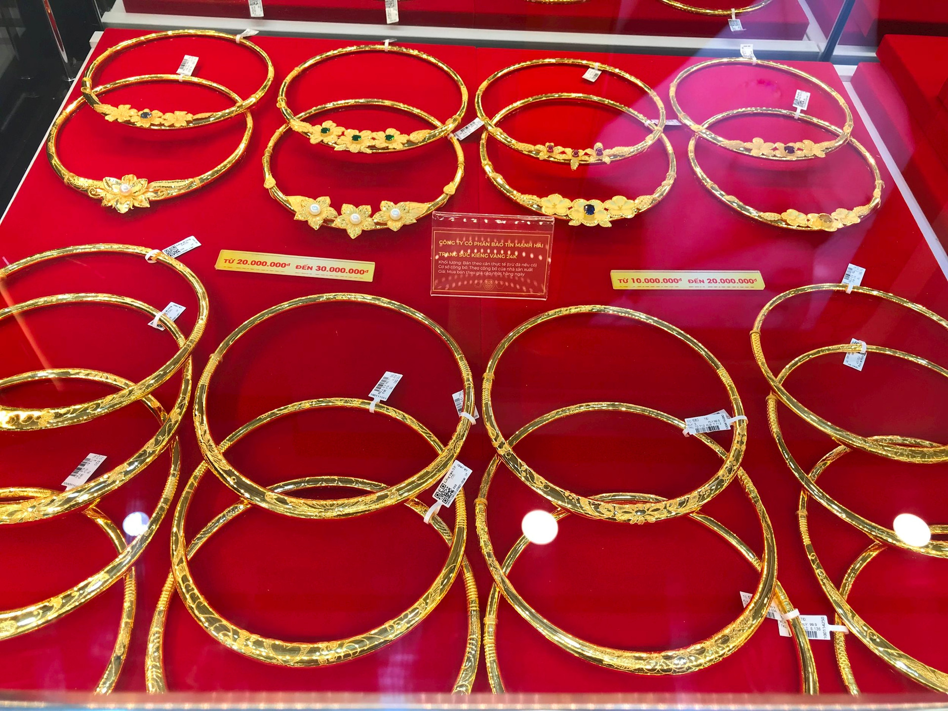 Trong khi đó, giá vàng nhẫn cũng đi lên với mức tăng mạnh hơn, có nơi điều chỉnh tăng 450.000 đồng/lượng, lên mức 57,8 triệu đồng/lượng (mua vào) - 58,8 triệu đồng/lượng (bán ra).