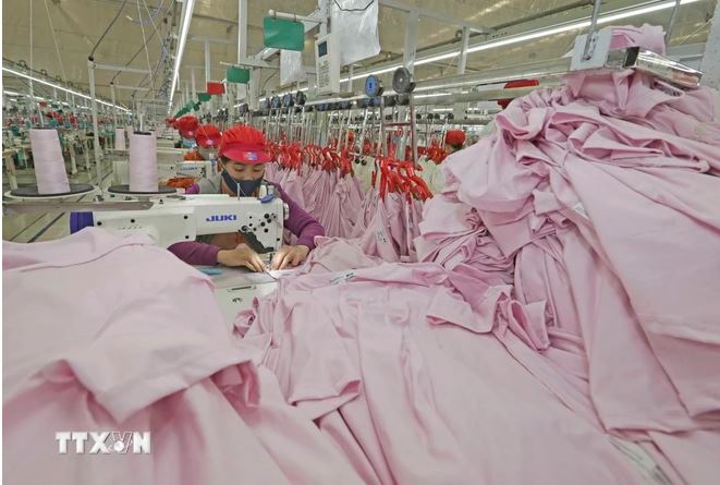 May hàng xuất khẩu tại Công ty may Tinh Lợi, Hải Dương. (Ảnh: Trần Việt/TTXVN)